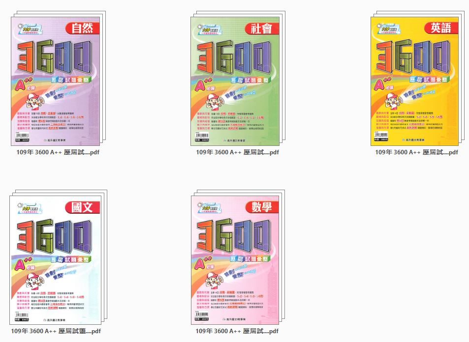 109年 國中會考 高升鑫 3600 A++ 歷屆試題彙整 五科合一 會考