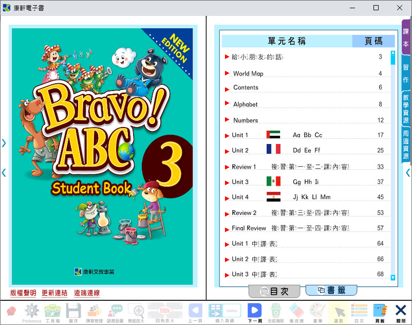 112學年上學期 國小 康軒版 英語電子書 Bravo!ABC 第3冊(含課本、習作含解答) 教學光碟