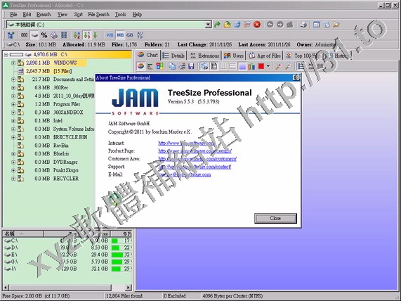 JAM Software TreeSize Professional v5.5.3.793 英文正式版(硬碟空間回收軟體)