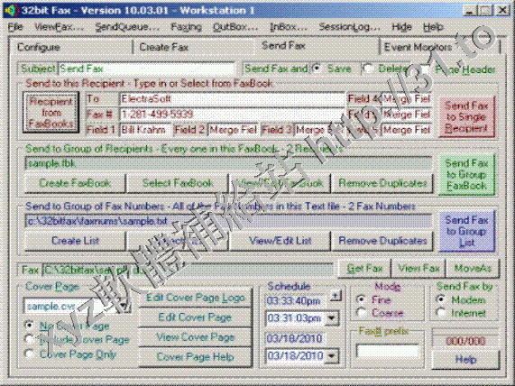 並可以創建定制的封面、定制傳真面的大小、瀏覽傳真、控制 Modem 的聲音、自動定時