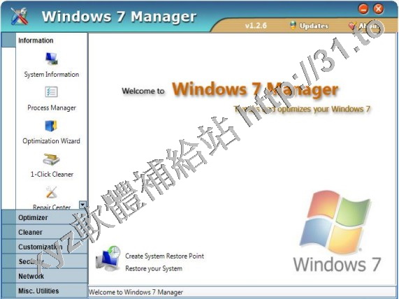 Yamicsoft Windows 7 Manager v2.0.8 英文正式版(Widnows 7 總管是優化和設置軟體)