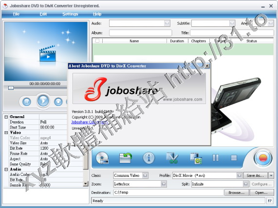 Joboshare DVD to DivX Converter v3.0.8.0427 英文正式版(音視頻轉換軟體)